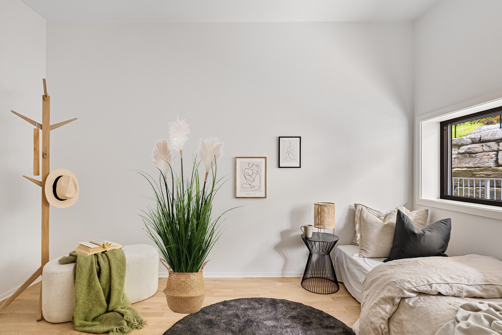 - Statement-Pieces: Große künstliche Gräser wie Schilfgras oder Pampasgras setzen ein kraftvolles Statement in leeren Ecken oder vor farbigen Wänden.