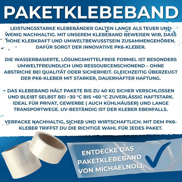 Setze auf eine zuverlässige, umweltbewusste und praktische Verpackungslösung – mit dem transparenten Paketklebeband von MichaelNoll.