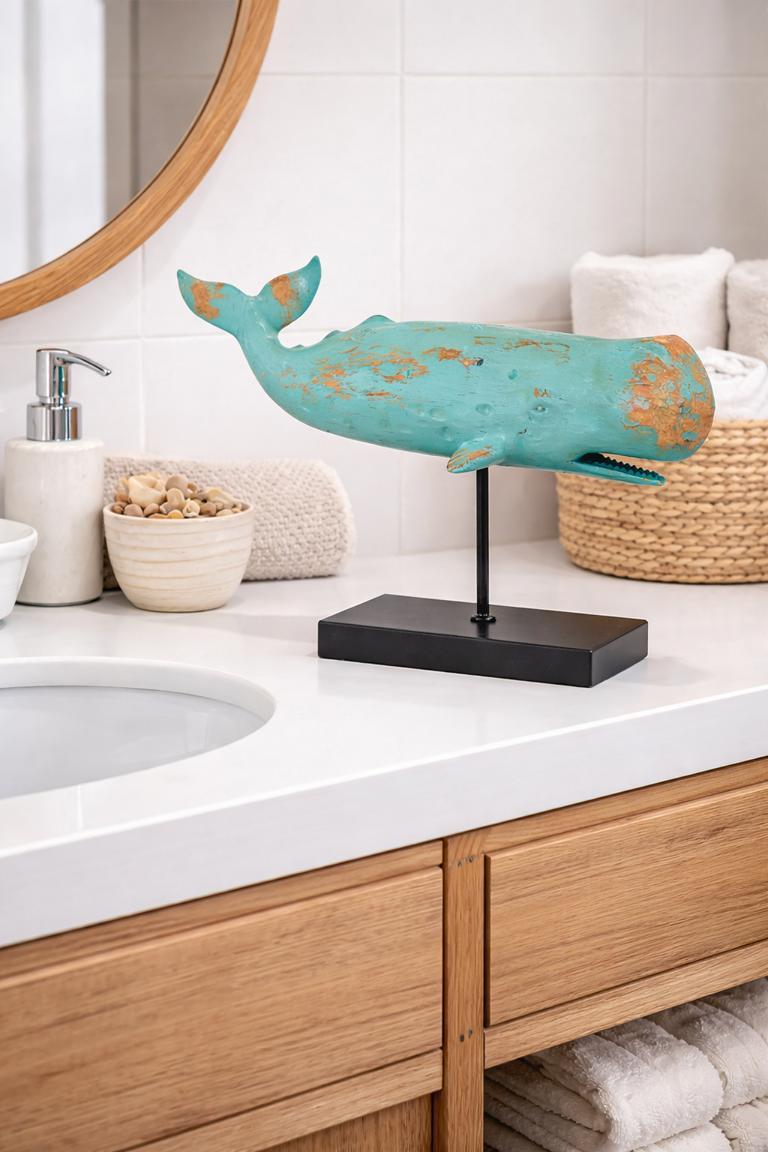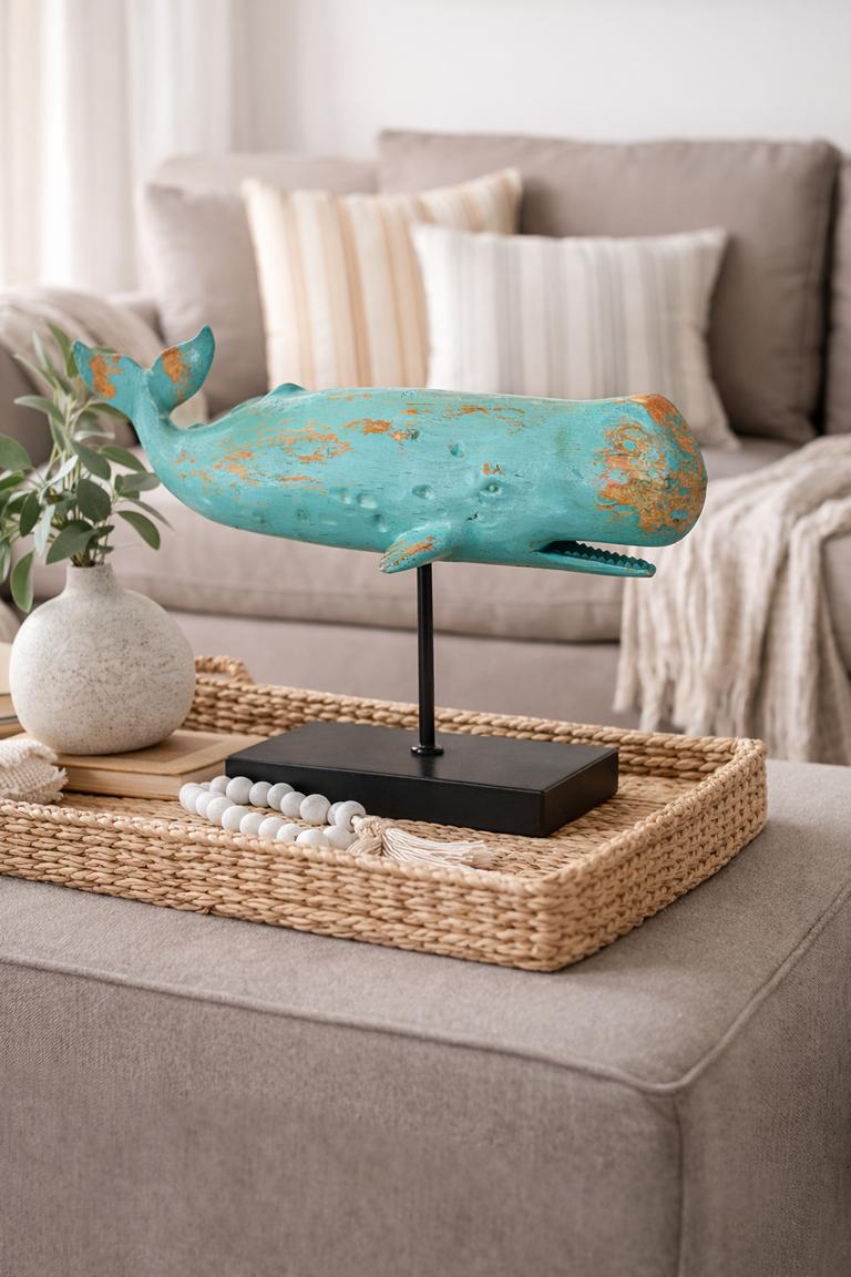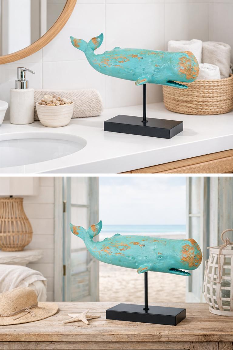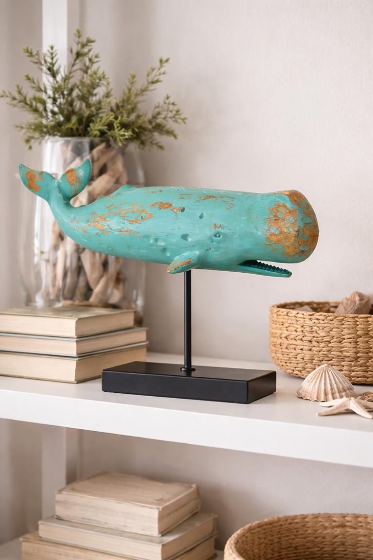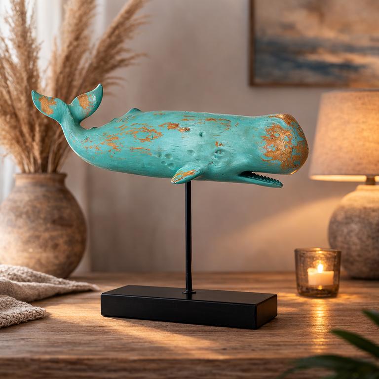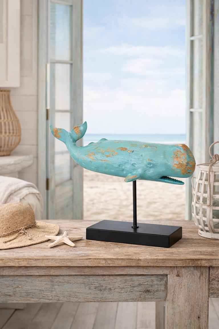 - Detailgetreue Walfigur auf Standfuß aus Metall