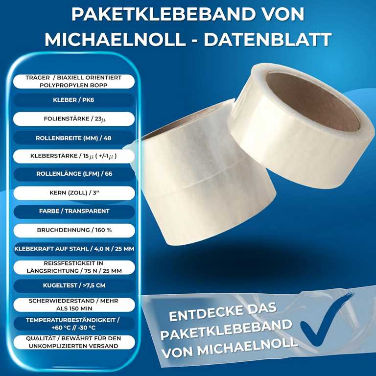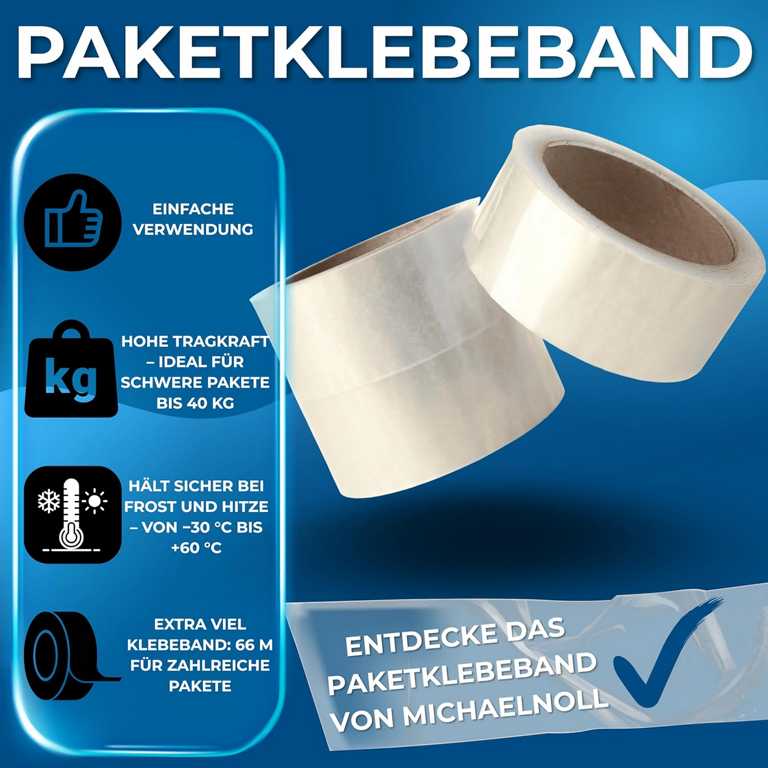 Setze auf eine zuverlässige, umweltbewusste und praktische Verpackungslösung – mit dem transparenten Paketklebeband von MichaelNoll.