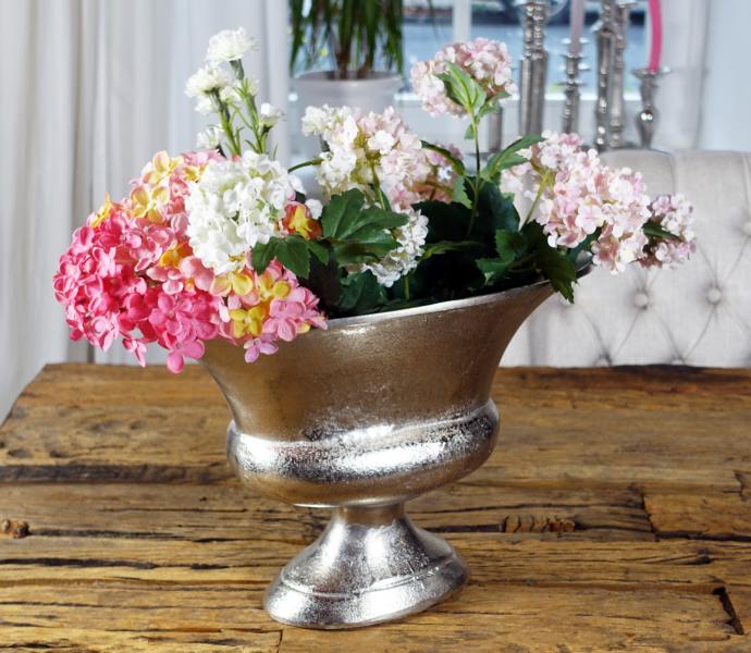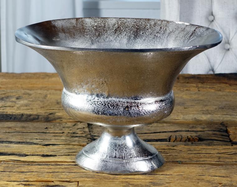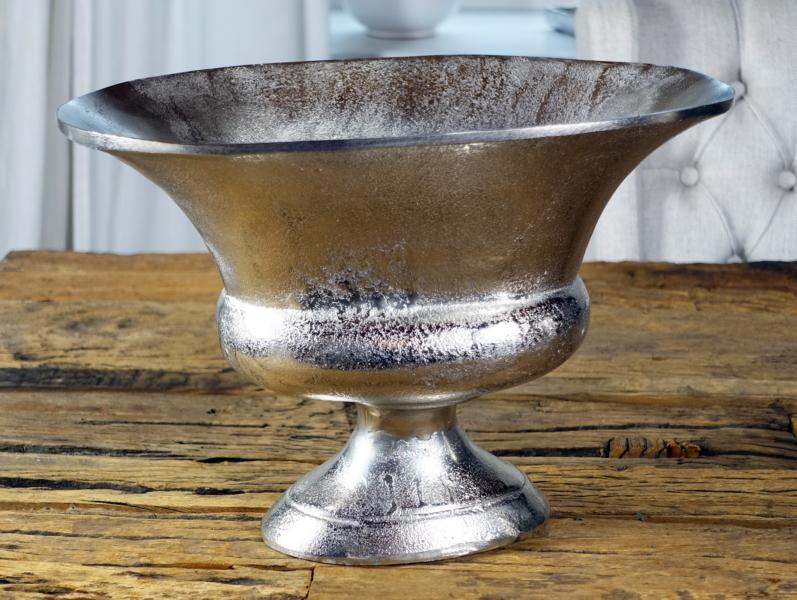 Diese exklusive Kelchvase ist von Hand gefertigt und aus hochwertigem Aluminium hergestellt. Ihre Größe beträgt großartige 38 cm. Die Vase verleiht durch ihre schönen Kurven ein tolles Flair. Die silberne Vase ist garantiert ein extravagantes Highlight in deinem Wohnbereich. Du kannst die Vase ganz individuell dekorieren. Auch ohne Dekoration sieht sie klasse aus. Als Geschenk eignet sie sich auch hervorragend. Die Vase ist nicht zum befüllen von Wasser und frischen Blumen geeignet.
